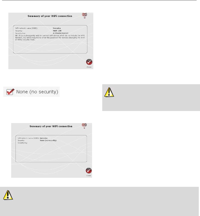 If you select NO SECURITY (not recommended):